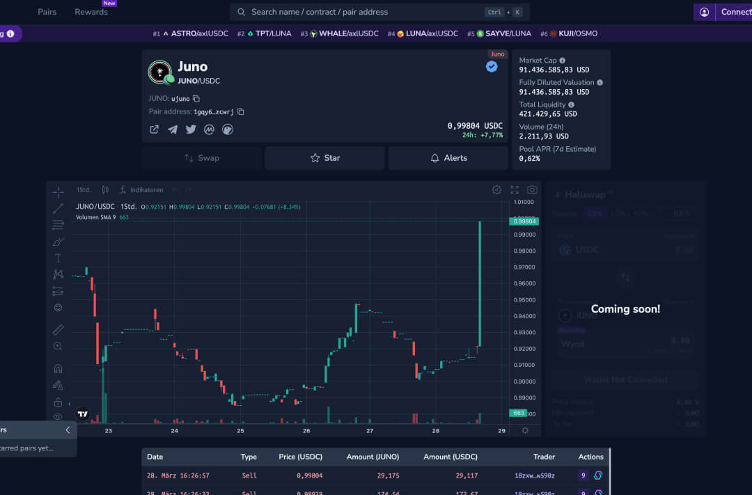 Coinhall provides real-time price charts and analytics for the Juno ecosystem.